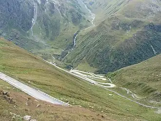 ![]() Blick von der Nufenenpassstrasse hinunter ins Ägenental mit der Ägene | ||