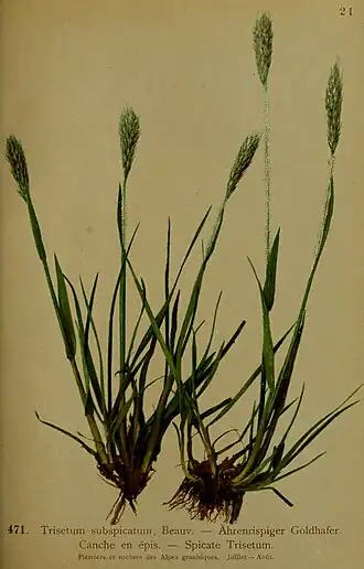 - ↑ a b c d e B.Valdés, H.Scholz; with contributions from E. von Raab-Straube & G.Parolly (2009+): Poaceae (pro parte majore). Datenblatt Trisetum spicatum In: Euro+Med Plantbase - the information resource for Euro-Mediterranean plant diversity.