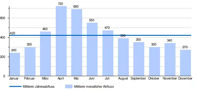 - ↑ Mittlere Abflüsse (m³/s) und Abflussregimetyp für das Gewässernetz der Schweiz (Bundesamt für Umwelt BAFU)