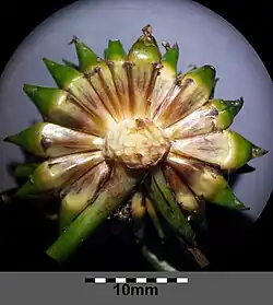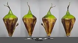 Je Blüte entstehen zahlreich, einsamige Steinfrüchte mit festem Kern und einem trocken-schwammigen Schwimmgewebe. Dadurch ist Schwimmausbreitung möglich. Die Schwimmdauer kann bis zu 12 Monate betragen. Die Früchte haben einen Griffelrest, deshalb ist auch Klettverbreitung als Bohrfrucht durch Wassertiere möglich.