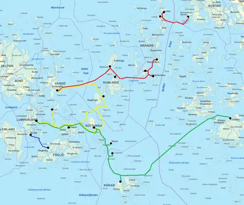 Der Verkehr im Åland-Archipel ist in vier Linien unterteilt. Die Linien verbinden die Archipelgemeinden mit dem Festland Åland und dem finnischen Festland.[1]