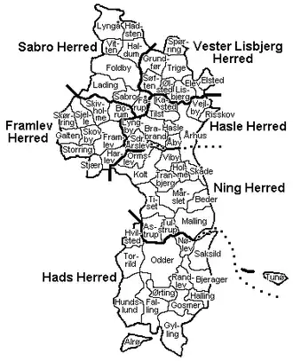 Århus Amt bestand aus sechs Harden (dän.: Herred):