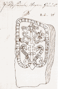 Übersetzt „Aunund (?), Rodas (?) Sohn ... (ließ den Stein setzen) für Torger, seinen Bruder, und Gudälv, seine Mutter, und für Åsbjörn und Oifuþ.“