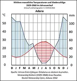 - ↑ Erdem Çanak: Cumhuriyet döneminde Adana (Seyhan)‘da meydana gelen seller ve alınan ölemler (1930–1956). In: CBÜ Sosyal Bilimler Dergisi. Band 13, Nr. 1, 2015, S. 296–341.
