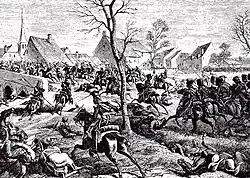 Dieser fügte sich und griff die gegnerische Kavallerie und die Infanterie wiederholt an, nach ersten Erfolgen musste sich die Brigade jedoch vor der Übermacht zurückziehen.[13] Die Éclaireurs verloren den Capitaine Zaluski, der in Gefangenschaft geriet, und 15 Reiter an Gefallenen und Verwundeten. Am 7. Februar ordnete Napoléon den Rückzug nach Troyes an.