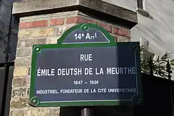 Mit wesentlicher Unterstützung von Émile Deutsch de la Meurthe konnte am südlichen Stadtrand von Paris die Cité internationale universitaire geschaffen werden. Das Studentenwohnheim der Fondation Deutsch de la Meurthe ist nach ihm und seiner Frau benannt.