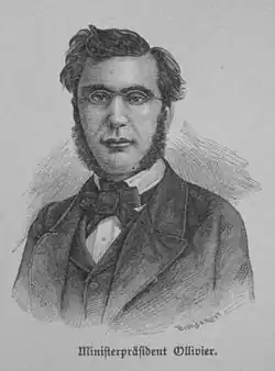 Émile Ollivier (* 2. Juli 1825 in Marseille; † 20. August 1913 in Saint-Gervais-les-Bains) war ein französischer Politiker und Staatsmann. Obwohl er ursprünglich Liberaler war, arrangierte er sich mit der Politik des Kaisers Napoleon III. Im Jahr 1869/1870 saß er dem französischen Ministerrat vor. Während der Spanischen Thronfolgekrise schloss er sich im Juli 1870 denjenigen in der Regierung an, die eine Kriegserklärung an Preußen befürworteten. Noch vor dem Untergang des Kaiserreichs im September wurde er entlassen.