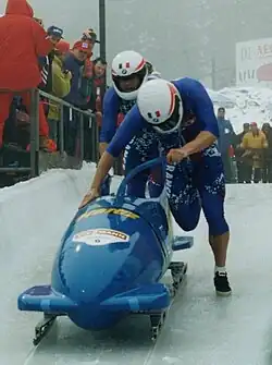 ![]() Éric Le Chanony (hinten) als Anschieber von Éric Alard bei der WM 1995 | ||||||||||||||||||||||