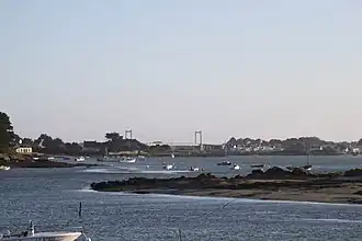 Der Étel oberhalb von Belz, Blick auf die Hängebrücke Pont Lorois