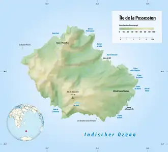 Die Île de la Possession ist durch den Canal des Orques von der etwa 15 km westlich der benachbarten Île de l’Est getrennt. Die Insel ist in Ost-West-Richtung etwa 19 km lang, in Nord-Süd-Richtung bis zu 14 km breit und hat eine Fläche von etwa 150 km². Der Pic du Mascarin (auch Pic du Mescado), ein Stratovulkan, ist 934 m hoch und damit der zweithöchste Berg des Archipels. Ein Gebirgszug im Norden der Insel wurde nach dem Schriftsteller Jules Verne benannt, dessen Bücher oft die Abenteuer von Schiffbrüchigen beschreiben.