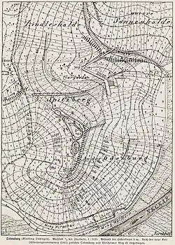 - ↑ Außer der Hauptburg gab es eine weiter zum Hang hin gelegene Vorburg (siehe den Lageplan bei Gerhard Wein: Mittelalterliche Burgen auf dem Ammerberg. In: Der Spitzberg bei Tübingen. Die Natur- und Landschaftsschutzgebiete Baden-Württembergs, Bd. 3, 1966, S. 4).