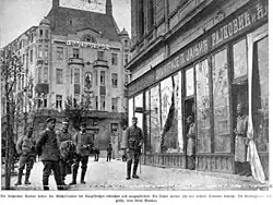 Nach der Kriegserklärung begann die österreichisch-ungarischen Armee mit dem Serbienfeldzug von 1914 und nahm Belgrad ein. Drei Offensiven zwischen August und Dezember scheiterten jedoch am erbitterten Widerstand der Serben und die Kontrolle über Belgrad ging gegen Ende des Jahres wieder verloren. Erst mit der Unterstützung der verbündeten Mittelmächte Bulgarien und Deutschland konnte das geschwächte Serbien im Herbst 1915 schließlich niedergerungen und besetzt werden. 1916 erklärten sowohl Österreich-Ungarn als auch Bulgarien, dass Serbien als politische Einheit nicht mehr existiere und seine Einwohner sich daher nicht auf die internationalen Kriegsregeln berufen könnten, die die Behandlung von Zivilisten im Sinne der Genfer Konventionen und der Haager Konventionen vorschreiben.[5] Zusätzlich zu einem militärischen Rechtssystem, das alle politischen Organisationen verbot, öffentliche Versammlungen untersagte und das Bildungswesen unter seine Kontrolle stellte, durfte die österreichisch-ungarische Armee das Kriegsrecht verhängen, Geiselnahmen praktizieren, Dörfer in Strafaktionen niederbrennen und auf Aufstände mit Hinrichtungen und Kriegsverbrechen reagieren.[6] 60.000 Zivilisten wurden von den Besatzern hingerichtet, meistens ohne Verfahren.[6] Während der Besatzung wurden zwischen 150.000 und 200.000 Männer, Frauen und Kinder in eigens errichtete Internierungs- und Konzentrationslager in Österreich-Ungarn deportiert.[7]