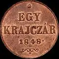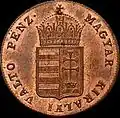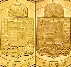 - ↑ 20 Kreuzer 1868 KB, Wertseite „VÁLTÓ PÉNZ“, Neuprägung mit Rosette vor FERENCZ