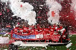 Kollers Nachfolger wurde der Deutsche Franco Foda, der die Nationalmannschaft ab den Länderspielen im November 2017 übernahm und bis zum Jahresende weiter Cheftrainer des SK Sturm Graz blieb.[15][16] Am 2. Juni 2018 folgte erstmals seit 1986 ein Sieg gegen Deutschland, als in einem Testspiel in Klagenfurt der amtierende Weltmeister durch Tore der in der deutschen Bundesliga aktiven Martin Hinteregger (FC Augsburg) und Alessandro Schöpf (FC Schalke 04) mit 2:1 geschlagen werden konnte. Unter Foda qualifizierte sich Österreich für die Europameisterschaft 2021, die aufgrund der COVID-19-Pandemie nicht wie geplant 2020 stattfinden konnte. Das EM-Team beendete die Gruppenphase hinter den Niederlanden und vor der Ukraine sowie Nordmazedonien auf dem 2. Platz, womit es sich erstmals für die Finalrunde einer EM qualifizierte. Dort scheiterte es im Achtelfinale in der Verlängerung am späteren Europameister Italien. Im weiteren Verlauf des Jahres 2021 beendete Österreich die Qualifikation zur Weltmeisterschaft 2022 in Katar auf dem 4. Platz. Da das ÖFB-Team in der UEFA Nations League 2020/21 seine Gruppe gewann, qualifizierte sie sich dennoch für die Play-off-Spiele. In diesen verlor Österreich im März 2022 gegen Wales und verpasste daher die WM-Qualifikation. Foda kündigte daraufhin seinen Rücktritt an. Sein letztes Länderspiel war das darauffolgende Testspiel am 29. März 2022.