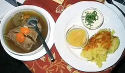 - Tafelspitz mit Röstkartoffeln oder Erdäpfelschmarrn, Schnittlauchsauce und Apfelkren oder Semmelkren