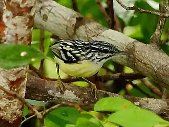 Der Weißkehl-Ameisenschlüpfer[1], auch Östlicher Weißkehl-Ameisenschlüpfer (Myrmotherula brachyura, Syn.: Music[apae] brachyurae), zählt innerhalb der Familie der Ameisenvögel (Thamnophilidae) zur Gattung Myrmotherula.[2]