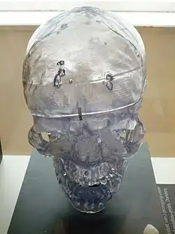 - Seit Januar 2003 tourt eine Wanderausstellung mit Reproduktionen der Ausrüstungsgegenstände und der Bekleidung des Mannes aus dem Eis durch die ganze Welt.[121] Die Wanderausstellung wird angesichts der fortschreitenden Forschungen bei jedem Standortwechsel inhaltlich aktualisiert. Vom 23. März 2016 bis 22. Januar 2017 wurde die Ausstellung unter dem Titel Ötzi. Der Mann aus dem Eis …und zwei von hier[122] im Braunschweigischen Landesmuseum in Braunschweig präsentiert.