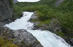 Der Øvstebrufossen ist ein Wasserfall in der norwegischen Gemeinde Stryn in der Provinz Vestland.