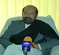 - ↑ AFGHANISTAN-POLITICS-SWORN-KARZAI „Newly elected transitional president, Hamid Karzai (L) sworns Afghanistan's new transitional cabinet at the presidential palace in Kabul, 24 June 2002. Karzai, has so far named a team of 28 ministers and attempted to give it an appearance more representative of Afghanistan's ethnic makeup, but it remains nevertheless dominated by ethnic Tajik Panjshiris who were loyal to deceased Northern Alliance commander Ahmed Shah Masood. AFP PHOTO/Philippe LOPEZ (Photo by PHILIPPE LOPEZ / AFP) (Photo by PHILIPPE LOPEZ/AFP via Getty Images)“
