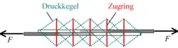 Ein Modell für das Tragverhalten von Übergreifungsstößen ist ein räumliches Fachwerk, welches, ausgehend von den jeweiligen Betonstahlrippen, aus Zugringen und Druckkegeln besteht. Daneben gibt es noch eine direktere Kraftübertragung zwischen den Betonstählen, welche als Strebenfachwerk abgebildet werden kann. Dabei werden die Kräfte zwischen den Stäben, ausgehend von den jeweiligen Betonstahlrippen, direkt über Zug- und Druckstreben übertragen.