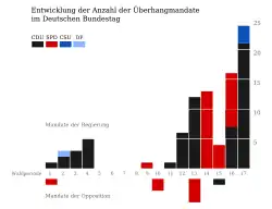 Bei den Bundestagswahlen 1998 bis 2005 erhielt die SPD jeweils mehr Überhangmandate als CDU/CSU. So kam sie 2002 trotz eines Stimmenvorsprunges von nur 6.027 Zweitstimmen (entspricht 0,01 %) durch Überhangmandate auf drei Sitze mehr als die Union und blieb damit stärkste Fraktion. 2005 erhielt die Union trotz eines Vorsprungs von 436.384 Stimmen (entspricht 0,9 %) lediglich vier Mandate mehr als die SPD.