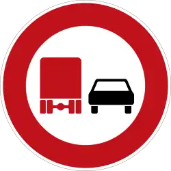 VZ 276: Verbietet den Führern von Kraftfahrzeugen aller Art, mehrspurige Kraftfahrzeuge und Krafträder mit Beiwagen zu überholen (Deutschland)