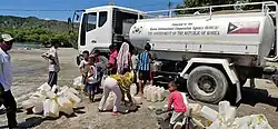 Der Staat verteilte Hilfsgüter zur Zeit vor allem in der Hauptstadt. Hier gab es mehrere Verteilstellen, um den Leuten die Rückkehr in ihre eigenen Stadtviertel zu ermöglichen und die Notlager zu entlasten. Ohnehin nutzten die meisten Menschen die Notunterkünfte nur zum Essen und Schlafen und gingen tagsüber zur Arbeit oder bauten ihre Häuser wieder auf. Die Verteilung von Bau- und Reinigungsmaterialien begann in den nächsten Tagen.[16]