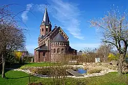Im Jahr 1807 wurde die Kirche in Ülpenich der Pfarrei Lövenich unterstellt. Erst im Jahr 1849 wurde sie dann zur selbständigen Pfarrkirche erhoben.[9] Ein Neubau aus dem Jahr 1701 wurde im Jahr 1903 wieder abgebrochen. Alle Kirchen vor dem Bau der heutigen Pfarrkirche sollen sich bis dahin auf dem Grundstück des heutigen Friedhofs befunden haben. Erst die neue Pfarrkirche, die in den Jahren 1891/92 nach einem Entwurf von Theodor Kremer als Basilika aus Backstein im neuromanischen Stil errichtet wurde, befand sich an der heutigen Stelle auf einem von den ortsansässigen Gutsherren-Brüdern Mauhs gestifteten Grundstück an der Moselstraße.