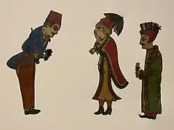 - „Üsküdar’a Gider İken“ gehört auch zum Musik- und Textrepertoire des traditionellen Schattentheaters Karagöz und Hacivat.[70][72] Das Lied wird dabei in den Texten von der Frau von Karagöz und von dem gebildeten und gepflegten Dandy Çelebi gesungen.[70][72]