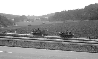 ![]() Blick auf den Üttingshof während einer US-Militärübung, 1984