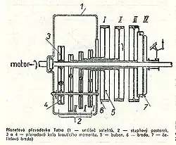 Die Kraftübertragung wurde über ein Planetengetriebe realisiert. Das Drehmoment des Motors wurde auf Planetenräder verteilt. Durch Bremsen auf dem äußeren Planetenkranz wurde die Kraftübertragung des ausgewählten Ganges auf die Abgangswelle übertragen. Durch die Auswahl der Motoren als Wendemotoren hatten diese Getriebe kein Wendegetriebe.