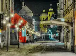 | Čopova ulica bei Nacht in Richtung Ljubljanica | |