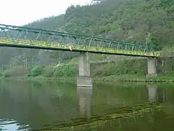 - Burgstätten Řivnáč und Levý Hradec mit Kirche des hl. Clemens am gegenüberliegenden Moldaufer