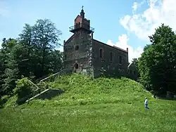 Der Berg, der zuvor hälftig im Besitz des Herzogtums Schweidnitz und des Breslauer Sandstifts war, ging 1494 ganz in den Besitz des Stifts über, das auf dem Berg eine Wallfahrtskapelle errichten ließ. Zwischen 1698 und 1702 wurde die Kapelle Mariä Heimsuchung erneuert. 1834 zerstörte ein Blitzschlag das Gebäude. Für den Wiederaufbau in den Jahren 1851 und 1852 griff man auf die Pläne des Baumeisters Gericke zurück; ein Entwurf von Karl Friedrich Schinkel fand dabei keine Berücksichtigung. Ferner wurde der „Heilige Berg Schlesiens“, der Zobten, auf dem sich seit dem 5. Jahrhundert keltische und germanische Kultstätten befanden, als Ort eines Blücher-Denkmals vorgeschlagen. Schadow hatte hierfür einen Entwurf gefertigt, der sich nicht verwirklichen ließ.[3] Im Jahre 1949 verursachte ein erneuter Blitzeinschlag wiederum schwere Schäden an der Kapelle.