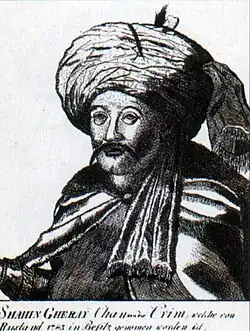 Şahin Giray (شاهين كراى; krimtatarisch Şahin Geray, * 1745 in Edirne; † 1787 auf Rhodos) war der letzte Khan der Krim (1777–1782, 1782–1783).