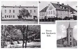 Bei der Volksabstimmung in Oberschlesien am 20. März 1921 stimmten 213 Wahlberechtigte für einen Verbleib bei Deutschland und 1015 für Polen[2]. Sandowitz verblieb beim Deutschen Reich. 1933 lebten im Ort 2.494 Einwohner. 1939 hatte der Ort 2.692 Einwohner. Bis 1945 befand sich der Ort im Landkreis Groß Strehlitz.