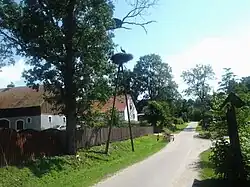 Żydowo nennt man gerne „Storchenhauptstadt“ im nördlichen Ermland,[7] wo sich eine für Störche ideale Landschaft bietet. An der heutigen Grenze zwischen der Oblast Kaliningrad und der Woiwodschaft Ermland-Masuren gibt es zahlreiche Feuchtgebiete mit regelmäßigen Überschwemmungen, brachliegenden Feldern und einer nur sehr extensiv betriebenen Landwirtschaft. So wundert es nicht, dass es an der Grenze allein zehn Orte gibt, die sich Storchendörfer nennen, und auch nicht, dass das Dorf mit den meisten Storchennestern (fast doppelt so viele wie Einwohner!) nun eben Schewecken/Żywkowo ist.