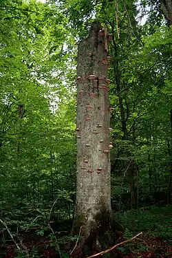 Die ältesten Bäume sind 300–400 Jahre alt und 40–50 Meter hoch. In der Krautschicht wachsen charakteristische Arten, zum Beispiel Zahnwurz, Eichenfarn, Waldmeister, Einbeere, Wald-Sanikel, Goldnessel und Hasenlattich. Eine regionale Besonderheit ist das Kleeblatt-Schaumkraut. In den Quellsümpfen wachsen der Behaarte Kälberkropf, Bitteres Schaumkraut und Wechselblättriges Milzkraut. An den Rändern der Feuchtgebiete sind Wolliges Reitgras, Wald-Hainsimse und Wald-Soldanelle heimisch.