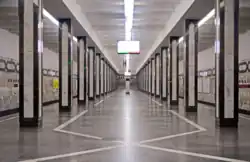 Sie wurde unter der Leitung der Architekten L. Kochubey und L. Avramenko gebaut. Der Boden des Bahnhofs ist mit grauen Granitplatten bedeckt. In der Mitte sind zwei weiße Marmorstreifen ausgelegt. Die Säulen, die die Bögen des Bauwerks tragen, ähneln Minaretten. Die Säulen sowie der Boden sind mit Granit- und Marmorplatten ausgekleidet. Die Decke der Station besteht aus Betonbalken, die mit weißer Emaille bedeckt sind.[2][3]