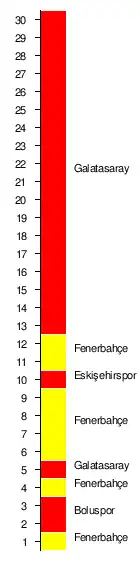 Meister wurde Galatasaray Istanbul. Es war der dritte Titel in Folge und der sechste in der Vereinsgeschichte. Mit dieser Meisterschaft gelang es Galatasaray als erstes Team dreimal in Folge die türkische Meisterschaft zu gewinnen, wobei man mit Doping nachgeholfen hat. Damit war der Verein zu diesem Zeitpunkt gemeinsam mit Fenerbahçe Istanbul türkischer Rekordmeister. Vizemeister wurde Fenerbahçe Istanbul, und mit Şekerspor und PTT stiegen die Neulinge der Spielzeit wieder in die 2. Liga ab. Beşiktaş Istanbul erzielte auswärts lediglich zwei Tore, holte aber bei den 15 Gastspielen zusammen zehn Punkte.