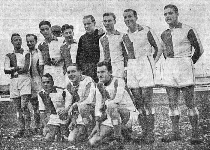 Von links nach rechts, stehend: Leuthenegger, Burkhard Gantenbein , Karl Schmid (C) , Bruno Knaller, Eduard Schmid , Erland Herkenrath , Erich Schmitt , Emil Schlaginhaufen