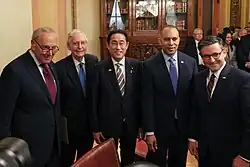 Der Sprecher des Repräsentantenhauses McCarthy wurde im Oktober 2023 durch ein Misstrauensvotum abgesetzt. Zum Nachfolger wurde Mike Johnson gewählt. Ausgeschlossen wurde der Abgeordnete George Santos und es wurde Anklage gegen Senator Robert Menendez wegen Bestechlichkeit erhoben. Untersuchungen für ein Amtsenthebungsverfahren gegen Präsident Joe Biden wurden eröffnet.[6] Im Februar 2024 wurde ein Amtsenthebungsverfahren gegen Heimatschutzminister Alejandro Mayorkas eingeleitet, das erste Amtsenthebungsverfahren gegen einen Kabinettsminister seit etwa 150 Jahren.[7] Der Senat eröffnete kein Hauptverfahren, sondern wies die beiden gegen Mayorkas’ Amtsführung vorgebrachten Anklagepunkte am 17. April 2024 ab.[8] Ein am 8. Mai 2024 von Marjorie Taylor Greene mit Unterstützung von Paul Gosar und Thomas Massie gegen den Sprecher des Repräsentantenhauses eingebrachtes Misstrauensvotum wurde noch am gleichen Tag mit großer Mehrheit beider Parteien abgewiesen.[9]