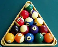 Die Kugeln werden zu Beginn im Dreieck aufgebaut. Die Anordnung ist frei wählbar, wobei man häufig die 1 an der vom Spieler aus gesehen linken Ecke und die 5 an der vom Spieler aus gesehen rechten Ecke des Dreiecks platziert. Der beginnende Spieler hat das Recht, die Position der „Weißen“ innerhalb des Kopffeldes (oberes Viertel des Tisches) zu wählen.