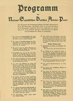 - 20. Februar: Die NSDAP wird durch Umbenennung der Deutschen Arbeiterpartei (DAP) gegründet. Die Bekanntgabe der Umbenennung erfolgt am 24. Februar im Münchener Hofbräuhaus. Dabei präsentiert Adolf Hitler auch das unter anderem auf die Schaffung eines totalitären großdeutschen Reiches, den Ausschluss von Juden aus der Gesellschaft und Pressezensur abzielende 25-Punkte-Programm.