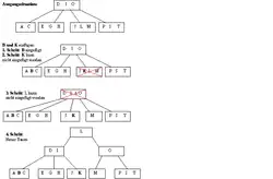 - Wenn nein, markiere das nächstgrößere Element im aktiven Knoten als aktives Element und gehe zu 1. zurück. Gibt es kein größeres Element mehr im aktiven Knoten, verzweige zum Kindknoten rechts des aktiven Element und setze dessen kleinstes Element als aktives Element und gehe zurück zu 1.