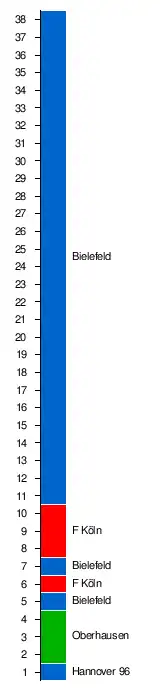 | 1. | Arminia Bielefeld | 3:1 | 2:0 | 3:1 | 5:0 | 3:0 | 2:0 | 2:0 | 2:2 | 2:1 | 6:0 | 7:1 | 4:1 | 3:0 | 5:1 | 5:0 | 5:1 | 4:0 | 11:0 | 5:1 | |