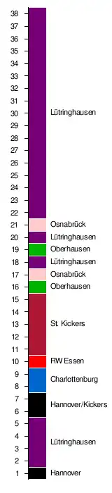 | 2. | FC Schalke 04 | 3:3 | 4:2 | 3:1 | 3:3 | 5:0 | 6:0 | 2:1 | 6:2 | 1:1 | 1:5 | 6:0 | 3:0 | 5:1 | 5:2 | 3:0 | [1] | 3:0 | 3:1 | 2:0 | |