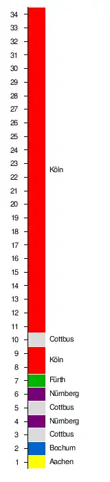 | 3. | Energie Cottbus | 2:0 | 1:1 | 2:0 | 2:2 | 0:1 | 4:2 | 4:1 | 3:0 | 1:0 | 2:4 | 3:2 | 3:2 | 1:0 | 2:0 | 5:0 | 3:2 | 2:0 | |