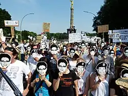 - 2011: Am 17. September finden erste Proteste der Occupy-Wall-Street-Bewegung statt, die bereits einen Monat später die größte Protestbewegung Nordamerikas ist. Konkrete Forderungen werden nicht genannt, jedoch richten sich die meisten Aktionen gegen soziale Ungleichheiten, Spekulationsgeschäfte von Banken sowie den Einfluss der Wirtschaft auf die Politik. In der Folge kommt es auch in anderen Ländern, darunter Deutschland, zu Protestaktionen mit ähnlichen Zielen.