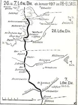 Die Division wurde von Januar 1917 bis November 1918 durchgehend an der Vogesenfront im Abschnitt zwischen Jungholz und Oberaspach eingesetzt. Der Divisionsstab befand sich in Ensisheim, der Stab der 51. (Württ.) Landwehr-Infanterie-Brigade in Wittenheim. Das Württ. Landwehr-Infanterie-Regiment Nr. 124 stand im rechten, gebirgigen Frontabschnitt Jägertanne, Hartmannsweilerkopf, Hirzstein. Das Württ. Landwehr-Infanterie-Regiment Nr. 119 am unteren Teil des Osthanges der Vogesen im Abschnitt Wattweiler und Uffholz. Nach links schloss das Württ. Landwehr-Infanterie-Regiment Nr. 123 von der Höhe 425 westlich von Sennheim bis nach Oberaspach südwestlich von Thann. Nach dem Waffenstillstand am 11. November 1918 marschierte die Division über Freiburg im Breisgau, durch den südlichen Schwarzwald, über Neustadt und Donaueschingen und mit der Bahn oder Fußmarsch nach den Demobilisierungsstandorten. Der Divisionsstab löste sich am 7. Dezember 1918 in Ulm auf.